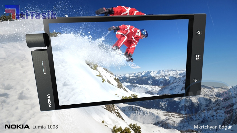 Ponsel dengan fitur 360 degree atau dapat memotret dari beberapa sudut dengan kualitas sama, dengan tampilan ramping dan natural, ponsel Nokai Lumia 1008 yang dikabarkan akan hadir ini merupakan ponsel dengan sistem operasi windows 8 BlueOS.